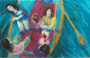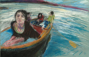 "Ausflug im Boot" (50 cm x 33 cm) pastel on paper (click to expand) |